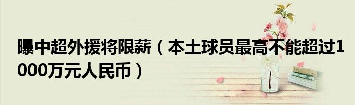 大家好,綜合小編來為大家講解下。曝中超外援將限薪,本土球員最高不能超過1000萬元人民幣很多人還不知道,現(xiàn)在讓我們一起來看看吧!