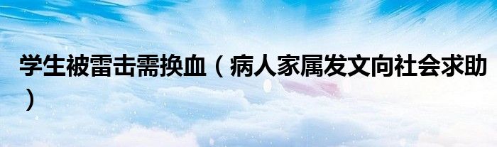 大家好,綜合小編來為大家講解下。學生被雷擊需換血,病人家屬發文向社會求助很多人還不知道,現在讓我們一起來看看吧!