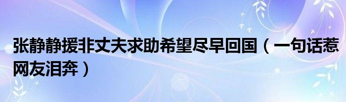 大家好,綜合小編來為大家講解下。張靜靜援非丈夫求助希望盡早回國,一句話惹網友淚奔很多人還不知道,現在讓我們一起來看看吧!