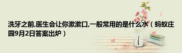 小雞寶寶考考你,洗牙之前,醫生會讓你漱漱口,一般常用的是什么水9月2日螞蟻莊園每日一題的答案是什么?選對答案的話就可以領取180g小雞飼料了,小伙伴們一起來看看今天的正確答案吧!