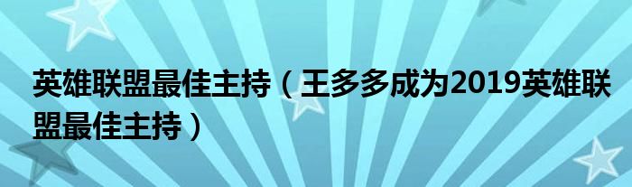 大家好,綜合小編來(lái)為大家講解下。英雄聯(lián)盟最佳主持,王多多成為2019英雄聯(lián)盟最佳主持很多人還不知道,現(xiàn)在讓我們一起來(lái)看看吧!