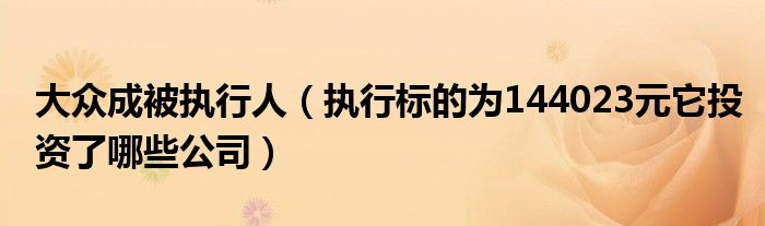 大家好,綜合小編來為大家講解下。大眾成被執行人,執行標的為144023元它投資了哪些公司很多人還不知道,現在讓我們一起來看看吧!
