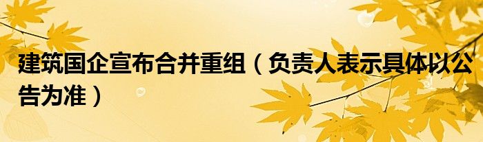 大家好,綜合小編來為大家講解下。建筑國企宣布合并重組,負責人表示具體以公告為準很多人還不知道,現在讓我們一起來看看吧!