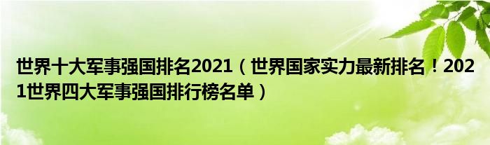 大家好,綜合小編來為大家講解下。世界十大軍事強國排名2021,世界國家實力最新排名!2021世界四大軍事強國排行榜名單很多人還不知道,現(xiàn)在讓我們一起來看看吧!
