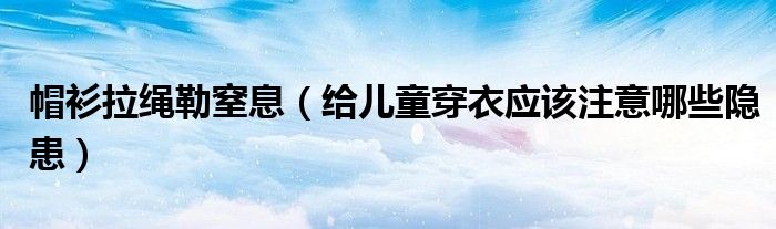大家好,綜合小編來為大家講解下。帽衫拉繩勒窒息,給兒童穿衣應該注意哪些隱患很多人還不知道,現在讓我們一起來看看吧!