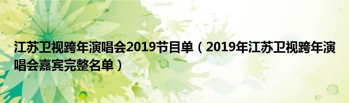 大家好,綜合小編來為大家講解下。江蘇衛視跨年演唱會2019節目單,2019年江蘇衛視跨年演唱會嘉賓完整名單很多人還不知道,現在讓我們一起來看看吧!