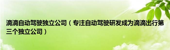 大家好,綜合小編來(lái)為大家講解下。滴滴自動(dòng)駕駛獨(dú)立公司,專(zhuān)注自動(dòng)駕駛研發(fā)成為滴滴出行第三個(gè)獨(dú)立公司很多人還不知道,現(xiàn)在讓我們一起來(lái)看看吧!
