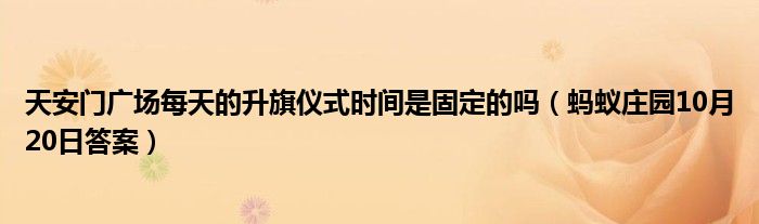 大家好,綜合小編來為大家講解下。天安門廣場每天的升旗儀式時間是固定的嗎,螞蟻莊園10月20日答案很多人還不知道,現在讓我們一起來看看吧!