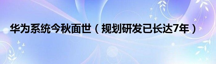 大家好,綜合小編來為大家講解下。華為系統今秋面世,規劃研發已長達7年很多人還不知道,現在讓我們一起來看看吧!