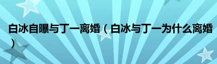 大家好,綜合小編來(lái)為大家講解下。白冰自曝與丁一離婚,白冰與丁一為什么離婚很多人還不知道,現(xiàn)在讓我們一起來(lái)看看吧!