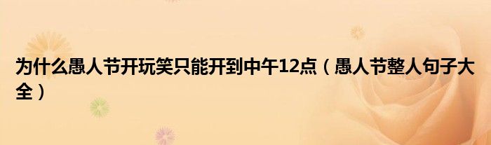 大家好,綜合小編來為大家講解下。為什么愚人節開玩笑只能開到中午12點,愚人節整人句子大全很多人還不知道,現在讓我們一起來看看吧!