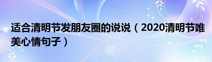 大家好,綜合小編來為大家講解下。適合清明節發朋友圈的說說,2020清明節唯美心情句子很多人還不知道,現在讓我們一起來看看吧!