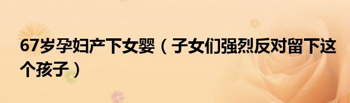 大家好,綜合小編來為大家講解下。67歲孕婦產(chǎn)下女嬰,子女們強(qiáng)烈反對留下這個孩子很多人還不知道,現(xiàn)在讓我們一起來看看吧!