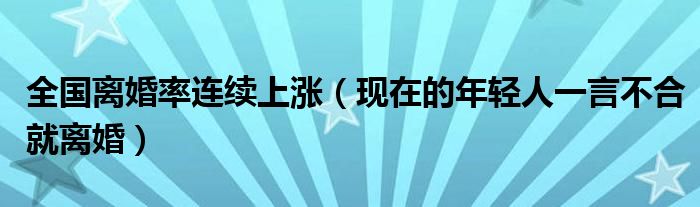 大家好,綜合小編來為大家講解下。全國離婚率連續上漲,現在的年輕人一言不合就離婚很多人還不知道,現在讓我們一起來看看吧!