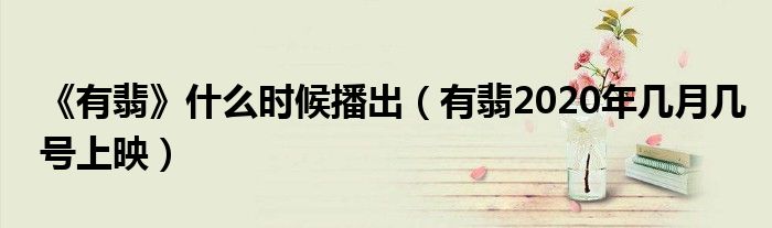 大家好,綜合小編來為大家講解下。《有翡》什么時候播出,有翡2020年幾月幾號上映很多人還不知道,現在讓我們一起來看看吧!