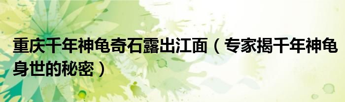 大家好,綜合小編來為大家講解下。重慶千年神龜奇石露出江面,專家揭千年神龜身世的秘密很多人還不知道,現在讓我們一起來看看吧!