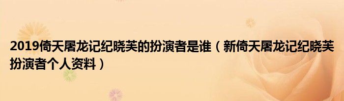 大家好,綜合小編來為大家講解下。2019倚天屠龍記紀曉芙的扮演者是誰,新倚天屠龍記紀曉芙扮演者個人資料很多人還不知道,現在讓我們一起來看看吧!