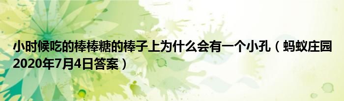 大家好,綜合小編來為大家講解下。小時候吃的棒棒糖的棒子上為什么會有一個小孔,螞蟻莊園2020年7月4日答案很多人還不知道,現在讓我們一起來看看吧!