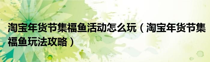 大家好,綜合小編來為大家講解下。淘寶年貨節(jié)集福魚活動怎么玩,淘寶年貨節(jié)集福魚玩法攻略很多人還不知道,現(xiàn)在讓我們一起來看看吧!