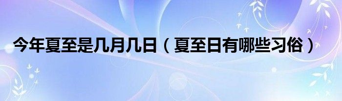 大家好,綜合小編來為大家講解下。今年夏至是幾月幾日,夏至日有哪些習(xí)俗很多人還不知道,現(xiàn)在讓我們一起來看看吧!