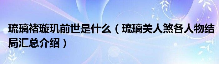 大家好,綜合小編來為大家講解下。琉璃褚璇璣前世是什么,琉璃美人煞各人物結局匯總介紹很多人還不知道,現在讓我們一起來看看吧!