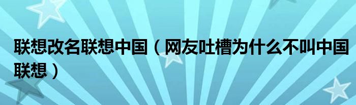 大家好,綜合小編來為大家講解下。聯想改名聯想中國,網友吐槽為什么不叫中國聯想很多人還不知道,現在讓我們一起來看看吧!