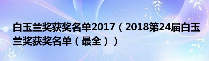 大家好,綜合小編來為大家講解下。白玉蘭獎獲獎名單2017,2018第24屆白玉蘭獎獲獎名單,最全很多人還不知道,現(xiàn)在讓我們一起來看看吧!