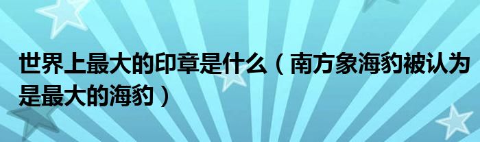 大家好,綜合小編來為大家講解下。世界上最大的印章是什么,南方象海豹被認為是最大的海豹很多人還不知道,現在讓我們一起來看看吧!
