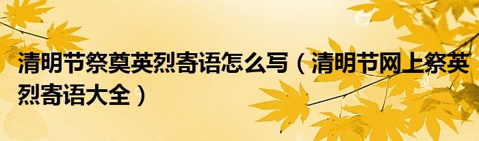 大家好,綜合小編來為大家講解下。清明節祭奠英烈寄語怎么寫,清明節網上祭英烈寄語大全很多人還不知道,現在讓我們一起來看看吧!