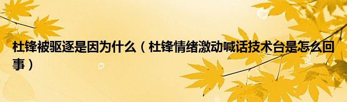 大家好,綜合小編來為大家講解下。杜鋒被驅逐是因為什么,杜鋒情緒激動喊話技術臺是怎么回事很多人還不知道,現在讓我們一起來看看吧!