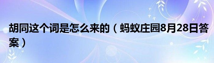 大家好,綜合小編來為大家講解下。胡同這個詞是怎么來的,螞蟻莊園8月28日答案很多人還不知道,現在讓我們一起來看看吧!