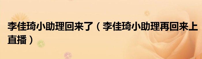 大家好,綜合小編來為大家講解下。李佳琦小助理回來了,李佳琦小助理再回來上直播很多人還不知道,現在讓我們一起來看看吧!