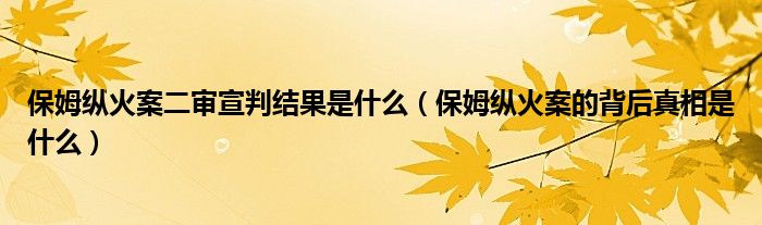 大家好,綜合小編來為大家講解下。保姆縱火案二審宣判結果是什么,保姆縱火案的背后真相是什么很多人還不知道,現在讓我們一起來看看吧!
