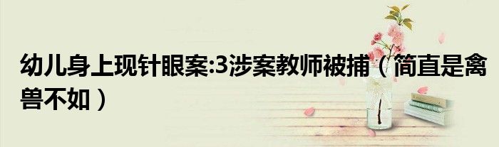 大家好,綜合小編來為大家講解下。幼兒身上現(xiàn)針眼案:3涉案教師被捕,簡直是禽獸不如很多人還不知道,現(xiàn)在讓我們一起來看看吧!