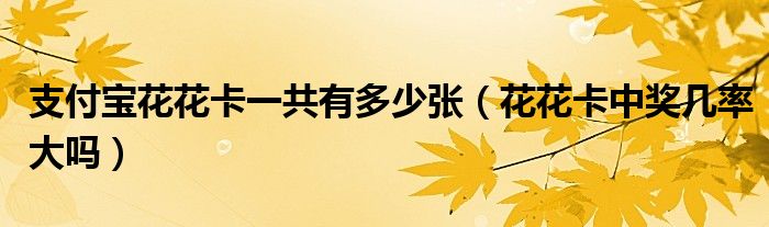 大家好,綜合小編來為大家講解下。支付寶花花卡一共有多少張,花花卡中獎(jiǎng)幾率大嗎很多人還不知道,現(xiàn)在讓我們一起來看看吧!