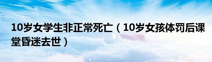 大家好,綜合小編來為大家講解下。10歲女學生非正常死亡,10歲女孩體罰后課堂昏迷去世很多人還不知道,現在讓我們一起來看看吧!