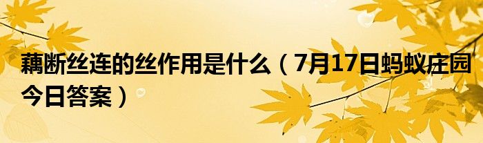 大家好,綜合小編來為大家講解下。藕斷絲連的絲作用是什么,7月17日螞蟻莊園今日答案很多人還不知道,現在讓我們一起來看看吧!