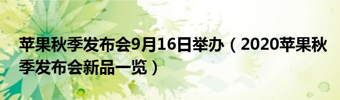 大家好,綜合小編來為大家講解下。蘋果秋季發布會9月16日舉辦,2020蘋果秋季發布會新品一覽很多人還不知道,現在讓我們一起來看看吧!