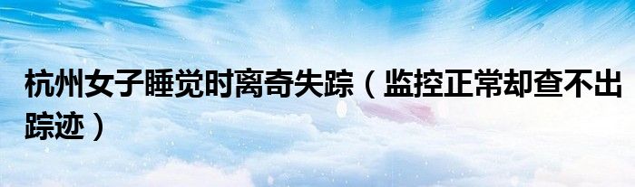 大家好,綜合小編來為大家講解下。杭州女子睡覺時離奇失蹤,監控正常卻查不出蹤跡很多人還不知道,現在讓我們一起來看看吧!