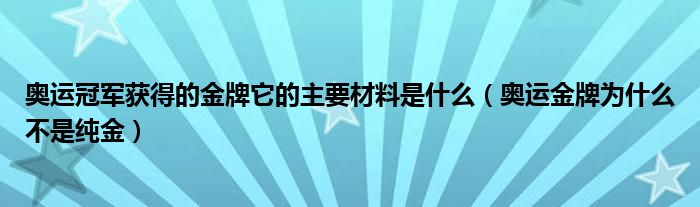 大家好,綜合小編來為大家講解下。奧運冠軍獲得的金牌它的主要材料是什么,奧運金牌為什么不是純金很多人還不知道,現在讓我們一起來看看吧!