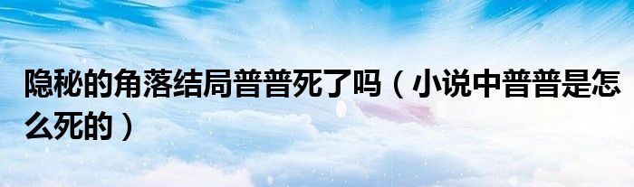 大家好,綜合小編來為大家講解下。隱秘的角落結局普普死了嗎,小說中普普是怎么死的很多人還不知道,現在讓我們一起來看看吧!