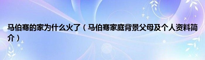 大家好,綜合小編來為大家講解下。馬伯騫的家為什么火了,馬伯騫家庭背景父母及個人資料簡介很多人還不知道,現在讓我們一起來看看吧!