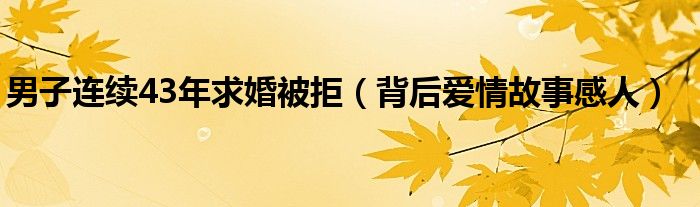 大家好,綜合小編來為大家講解下。男子連續43年求婚被拒,背后愛情故事感人很多人還不知道,現在讓我們一起來看看吧!
