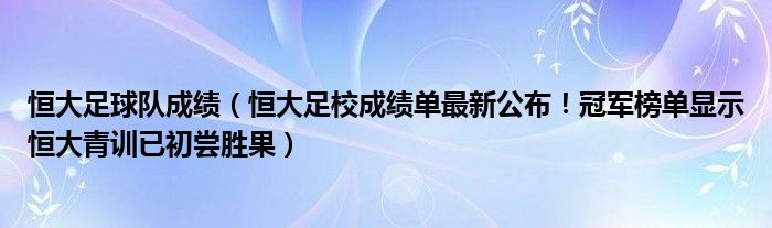 大家好,綜合小編來為大家講解下。恒大足球隊成績,恒大足校成績單最新公布!冠軍榜單顯示恒大青訓已初嘗勝果很多人還不知道,現在讓我們一起來看看吧!
