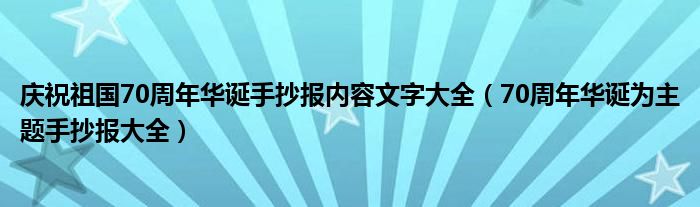 大家好,綜合小編來為大家講解下。慶祝祖國70周年華誕手抄報內容文字大全,70周年華誕為主題手抄報大全很多人還不知道,現在讓我們一起來看看吧!