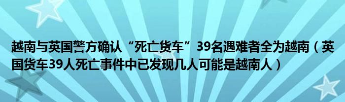 大家好,綜合小編來為大家講解下。越南與英國警方確認“死亡貨車”39名遇難者全為越南,英國貨車39人死亡事件中已發現幾人可能是越南人很多人還不知道,現在讓我們一起來看看吧!