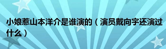 大家好,綜合小編來為大家講解下。小娘惹山本洋介是誰演的,演員戴向宇還演過什么很多人還不知道,現在讓我們一起來看看吧!