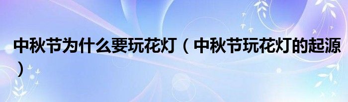 大家好,綜合小編來(lái)為大家講解下。中秋節(jié)為什么要玩花燈,中秋節(jié)玩花燈的起源很多人還不知道,現(xiàn)在讓我們一起來(lái)看看吧!