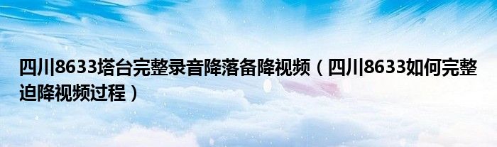 大家好,綜合小編來(lái)為大家講解下。四川8633塔臺(tái)完整錄音降落備降視頻,四川8633如何完整迫降視頻過程很多人還不知道,現(xiàn)在讓我們一起來(lái)看看吧!