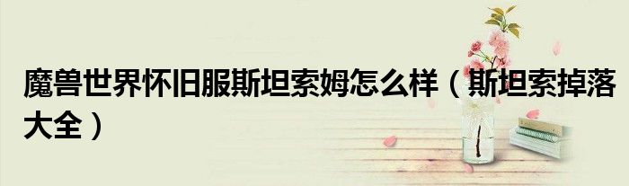 魔獸世界懷舊服斯坦索姆怎么樣 斯坦索掉落大全